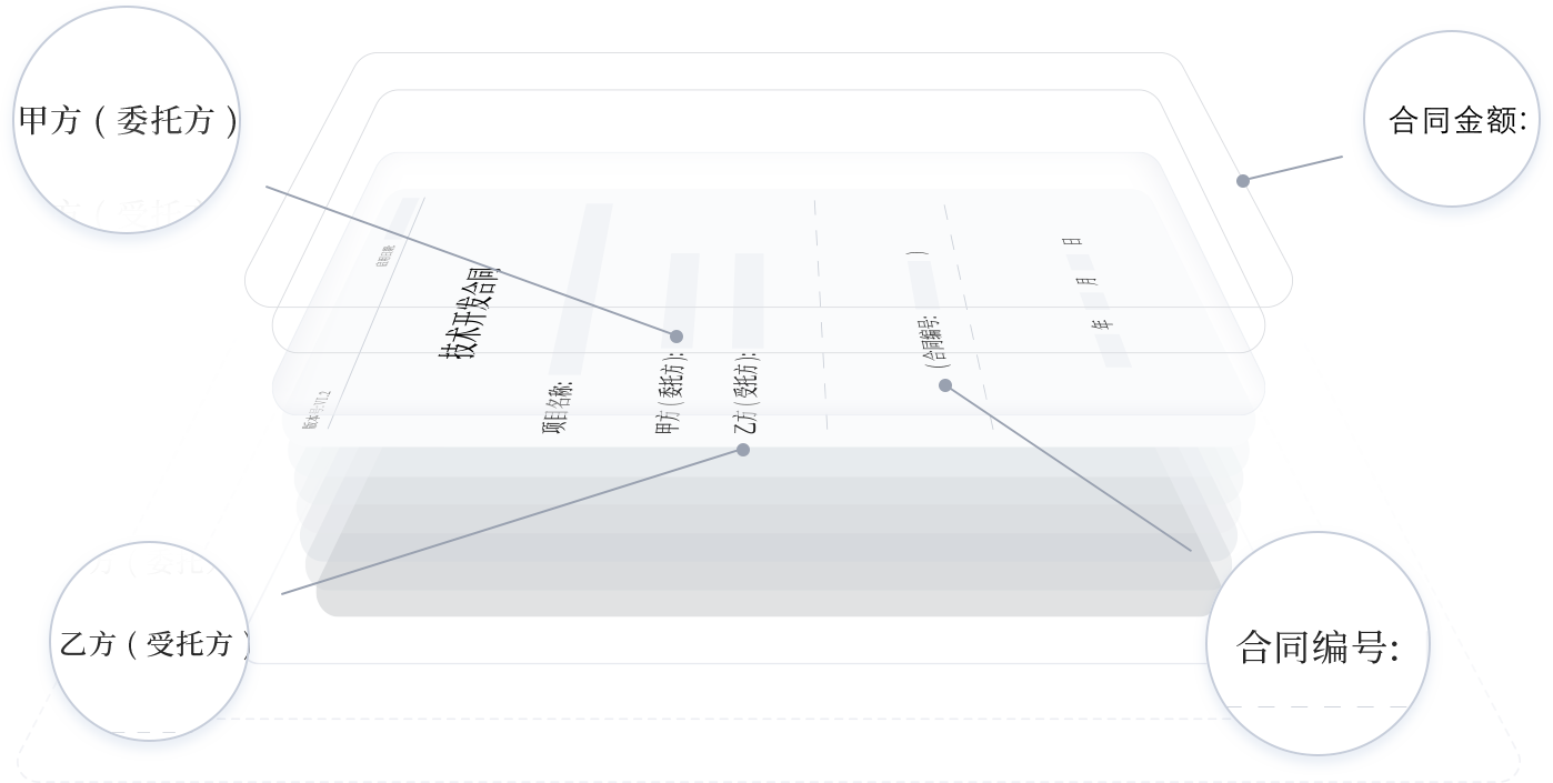 对合同扫描件或照片中的甲方名称、乙方名称、合同金额等字段进行抽取和定位,并结构化存储。